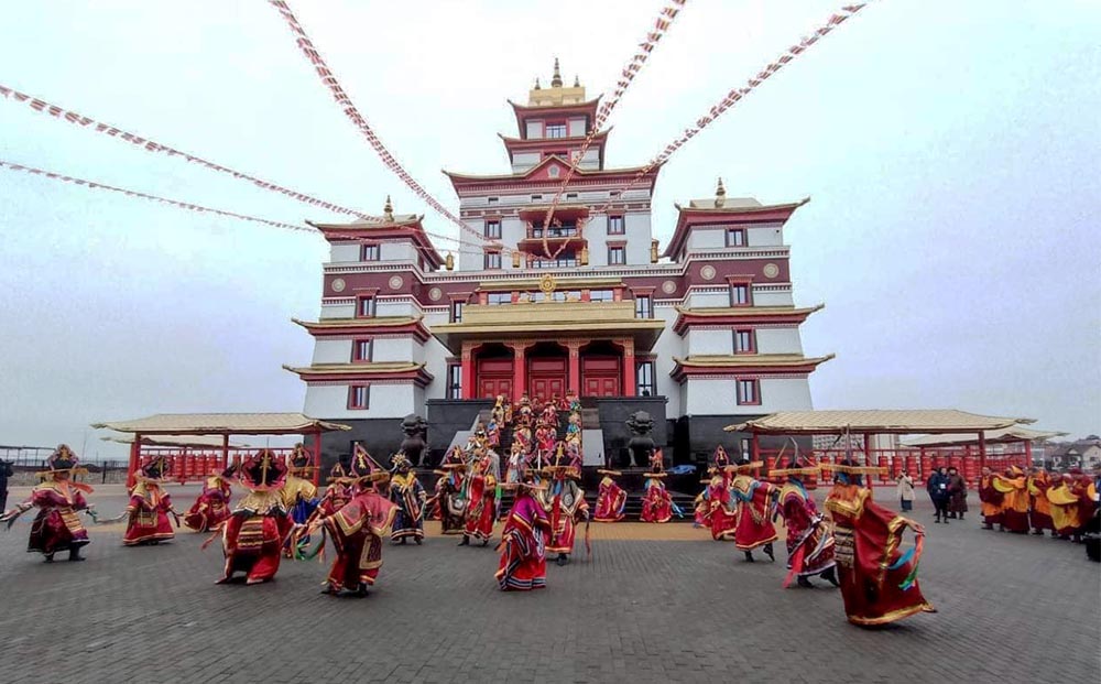 Þegar Dalai Lama heimsótti Tivu 1992 helgaði hann svæði sem notað var til að byggja klaustur sem var vígt á 2023. Klaustrið er 56 metrar á hæð og nær samstæðan yfir alls 9.3 hektara.
