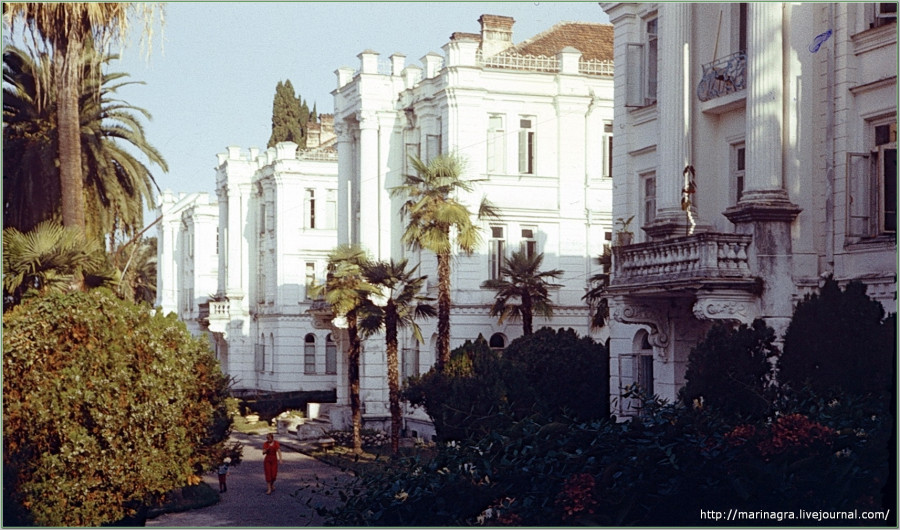 Foreldrar Fröken Tatjönu sem kenndi mér rússnesku í Moskvu unnu á sovétárunum hjá Mosfilm, Kvikmyndaframleiðslu ríkisins og voru send í verkefni í eitt ár til Abkasíu. Tatjana og systir hennar voru teknar með. Hún sagði að ef til væri himnaríki væri það eins og Abkasía. Abkasía var sovétska rivíeran og voru helstu gæðingar flokksins með sumarhallir þar. Þá var það feitur biti að fá pláss á heilsuhæli við Svartahafið í Abkasíu en Stalín sjálfur átti þar 5 hús. Hér að neðan eru nokkrar myndir frá þessum árum: